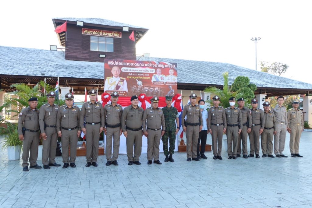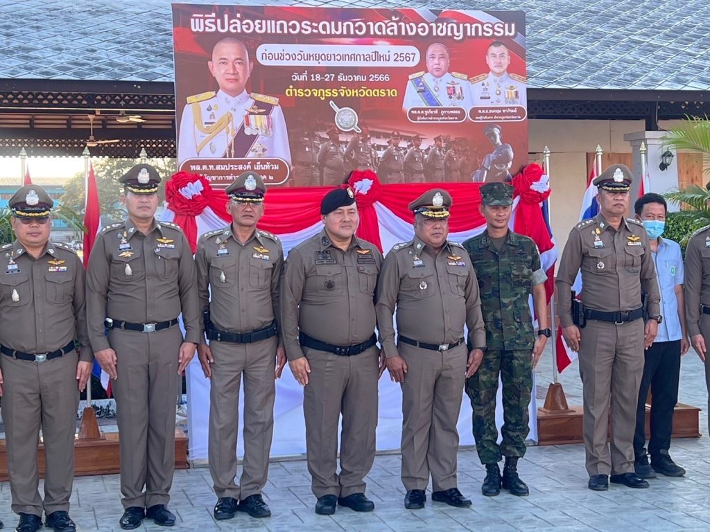วันนี้ ( 18 ธ.ค. 66 ) เวลา 16.30 น. พล.ต.ต.ชูเกียรติ ภูกาบพลอย ผบก.ภ.จว.ตราด ได้เดินทางมาเป็นประธานพิธีปล่อยแถวระดมกวาดล้างอาชญากรรม เนื่องในเทศกาลปีใหม่ ประจำปี 2567 โดยมีวัตถุประสงค์เพื่อป้องกันปราบปรามอาชญากรรม รักษาความสงบเรียบร้อย และการดูแลอำนวยความสะดวกด้านการจราจร การป้องกันและลดอุบัติเหตุทางถนน ในช่วงวันหยุดยาวช่วงเทศกาลปีใหม่ 2567 โดยมี พ.ต.อ.ธนกฤษ พาภิรมย์ รอง ผบก.ภ.จว.ตราด, หน.สภ และ ข้าราชการตำรวจ ในสังกัด ภ.จว.ตราด ,ทหาร ,ฝ่ายปกครอง และ หน่วยงานที่เกี่ยวข้อง เข้าร่วมพิธี ณ บริเวณ ลานหน้าศาลากลางจังหวัดตราด อ.เมืองตราด จ.ตราด
