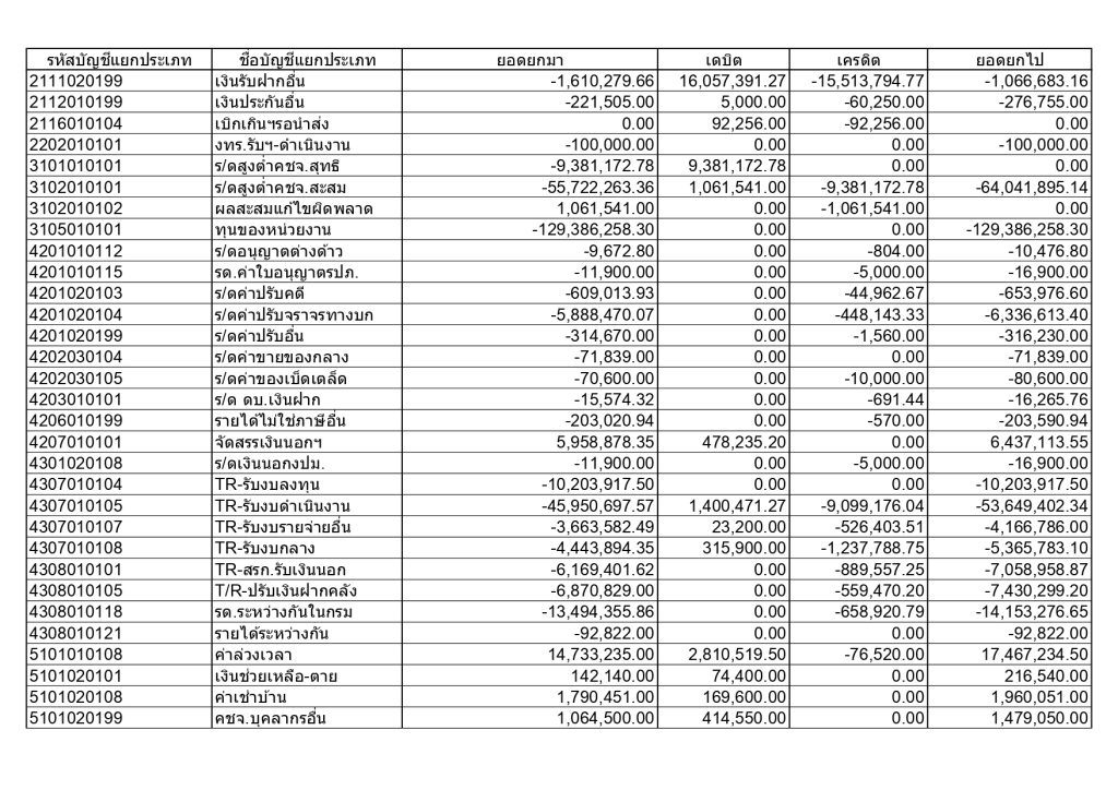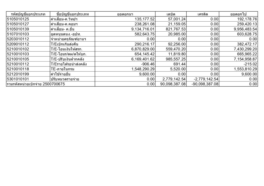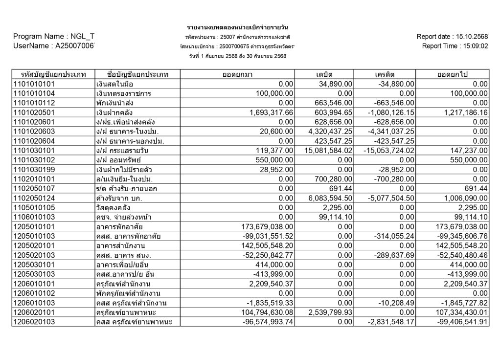 รายงานงบทดลองหน่วยเบิกจ่ายรายวัน วันที่ 1 กันยายน 2568 ถึง 30 กันยายน 2568